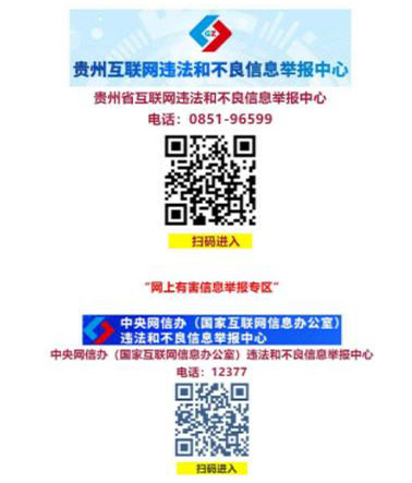 非本平台发布的网络违法和不良信息,请前往中央网情办(国家互联网信息办公室)违法和不良信息举报中心和贵州省互联网违法和不良信息举报中心举报: